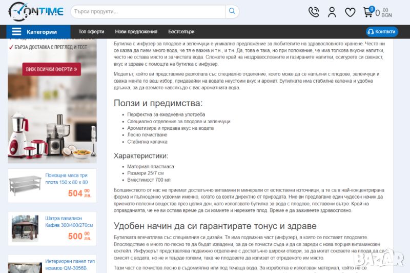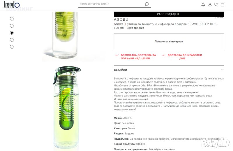 Бутилка за вода с инфузер за плодове и зеленчуци → Обява 45233156
