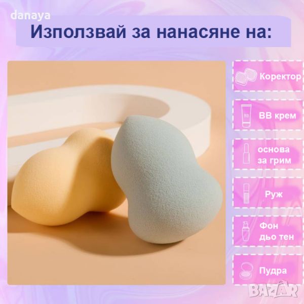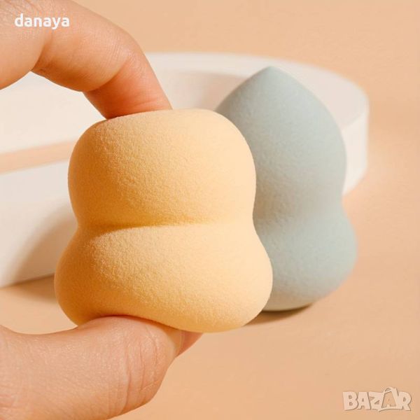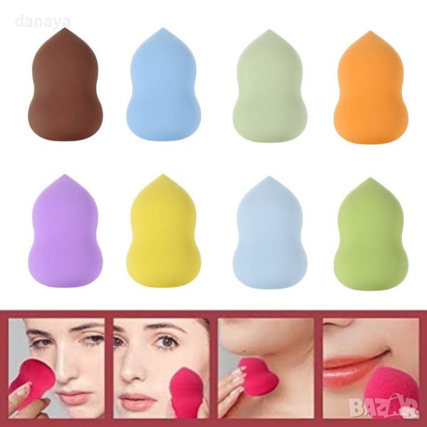 С яйцевидната гъбичка може да нанесете фон дьо тен, руж, сенки, хайлайтър, червило и молив за очи.