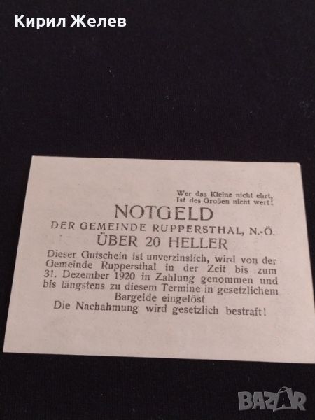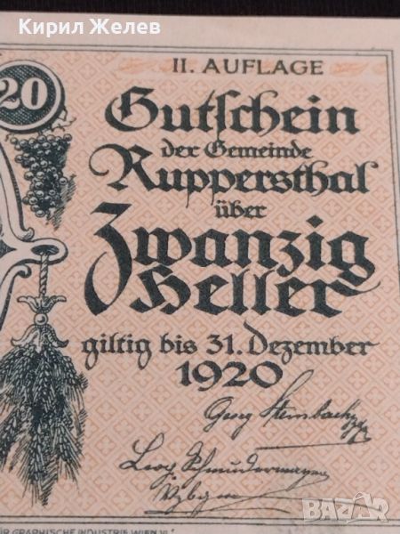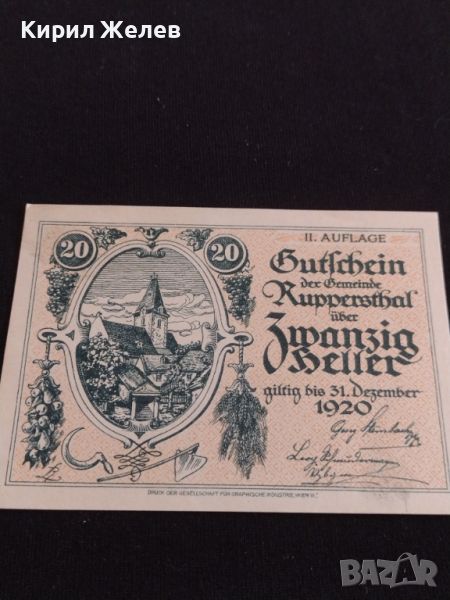 Банкнота НОТГЕЛД 20 хелер 1920г. Австрия перфектно състояние уникат за КОЛЕКЦИОНЕРИ 44650