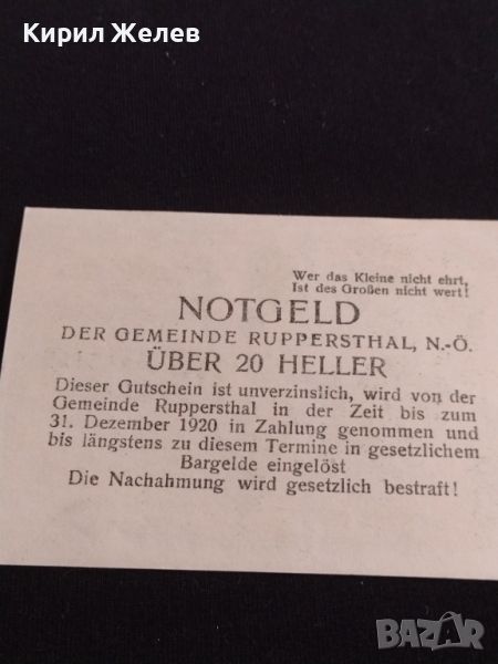 Банкнота НОТГЕЛД 20 хелер 1920г. Австрия перфектно състояние уникат за КОЛЕКЦИОНЕРИ 44650 → Обява 45234069