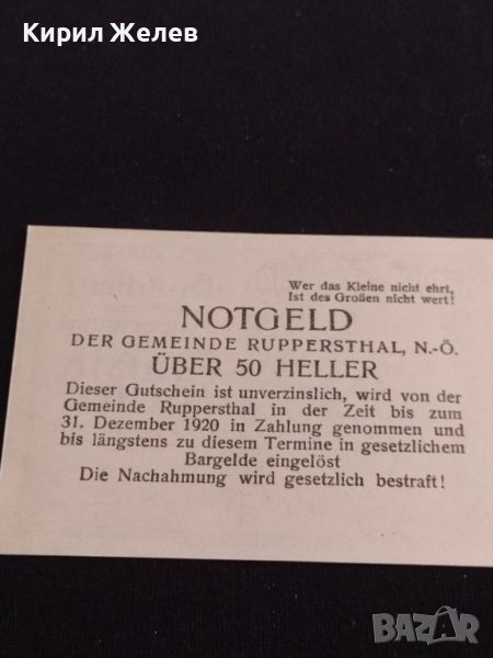 Банкнота НОТГЕЛД 50 хелер 1920г. Австрия перфектно състояние за КОЛЕКЦИОНЕРИ 44648 → Обява 45234134
