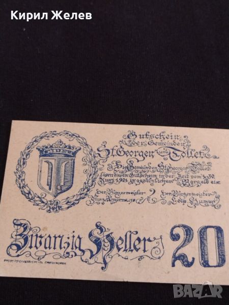 Банкнота НОТГЕЛД 20 хелер 1921г. Австрия Свети Георги перфектно състояние за КОЛЕКЦИОНЕРИ 44636 → Обява 45234772