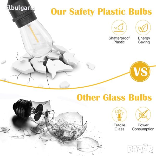 С топло бяла LED жичка, тези винтидж лампички биха били чудесна украса за вашата коледна градина, чадър, ограда, тераса, вътрешен двор, коридор, добавяйки приятна атмосфера към къщата Ви. Идеален за елегантно вечерно тържество. Ретро лампите с крушки могат да се използват като търговска декорация, те ще направят Вашата красива маса за хранене фокус на внимание и ще привлече повече клиенти в магазина Ви. Подходящ за ресторанти, кафенета, барове, механи и магазини за различни стоки.