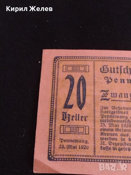 Банкнота НОТГЕЛД 20 хелер 1920г. Австрия перфектно състояние за КОЛЕКЦИОНЕРИ 44653 → Обява 45235153