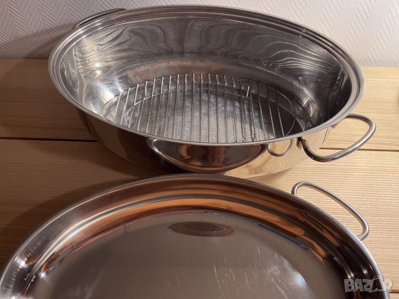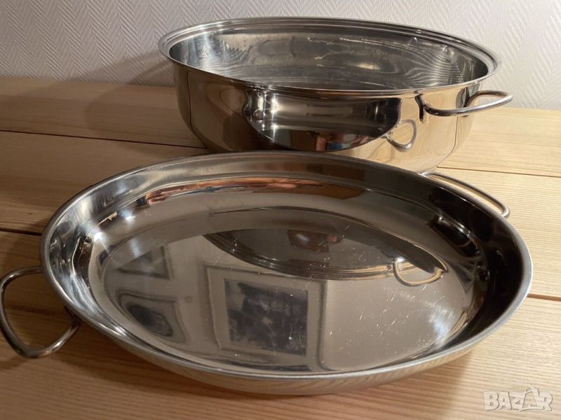 Неръждаема стомана, овална, с капак за сервиране и скара