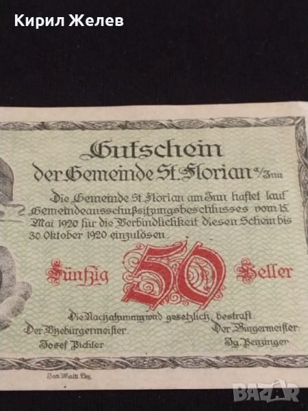 Банкнота НОТГЕЛД 50 хелер 1920г. Австрия Свети Флориан перфектно състояние за КОЛЕКЦИОНЕРИ 44665 → Обява 45236774