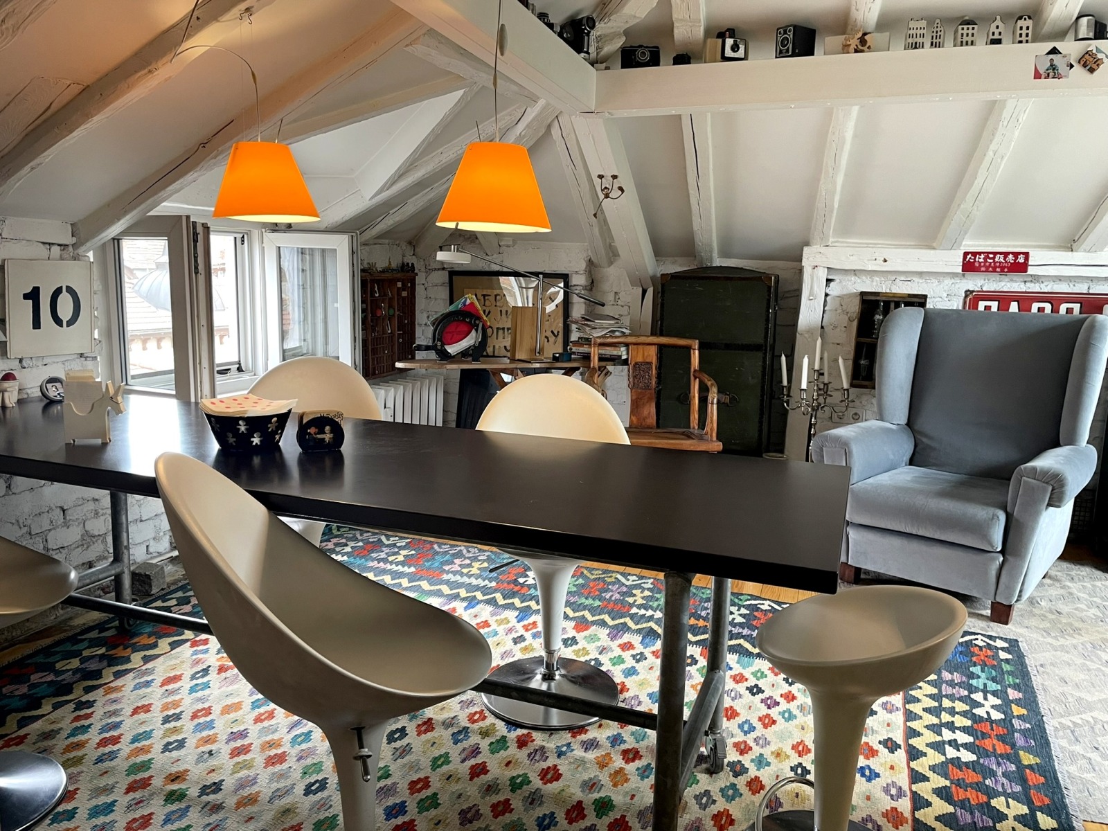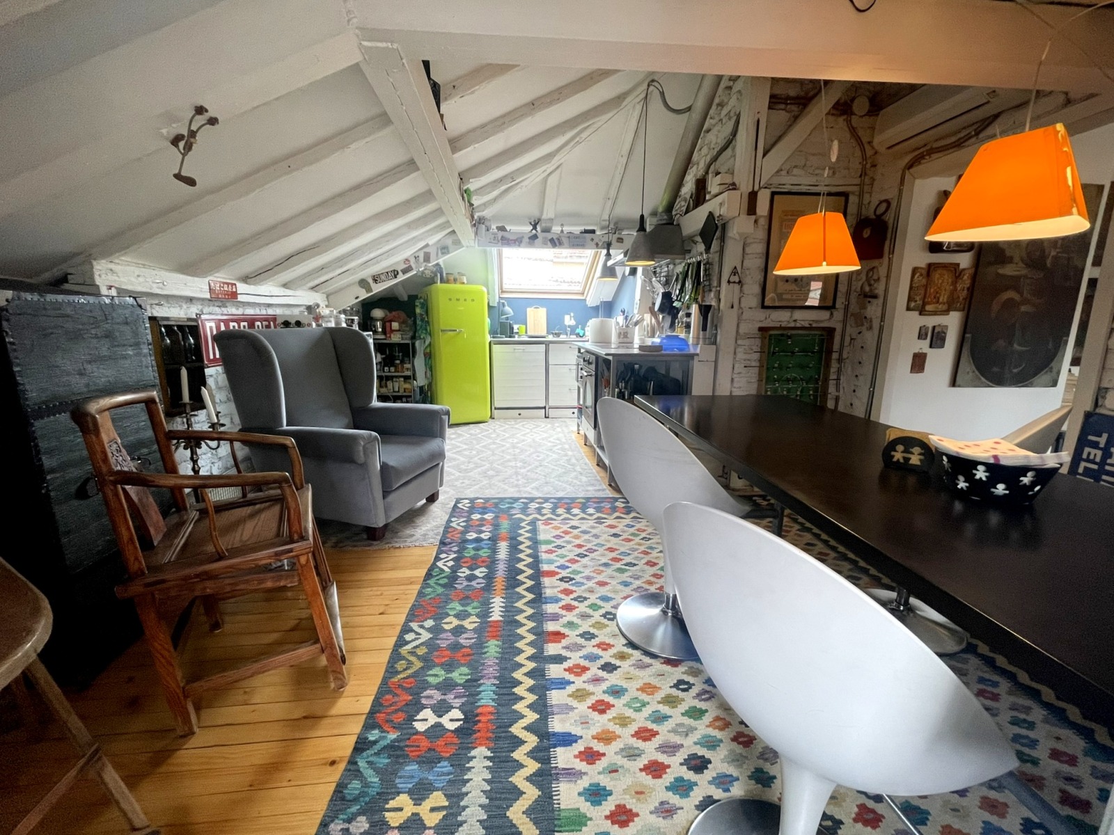 The apartment is located on a separate floor, it consists of a corridor, a bedroom, a second bedroom, a living room with a high domed ceiling, a spacious dining room with a recreation area/office, a bathroom with a toilet, a laundry room. Rich light, feeling of spaciousness.