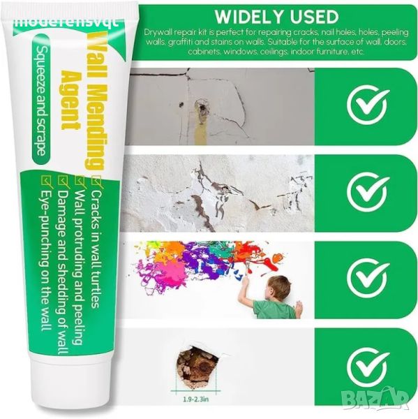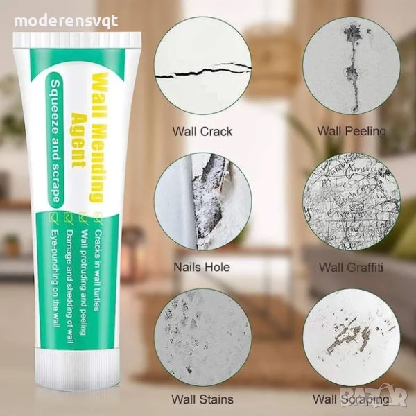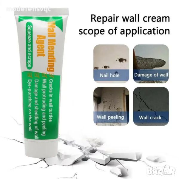Средство за поправяне на стени. Изстискайте и изстържете - запълва пукнатини в стенни конструкции. Ремонтна паста на водна основа. Лесен за ремонт, бърз и удобен.
