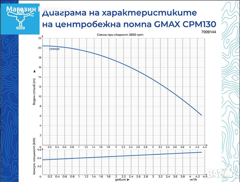 Центробежна водна помпа Gmax CPM130 0.37kw воден стълб 20м.