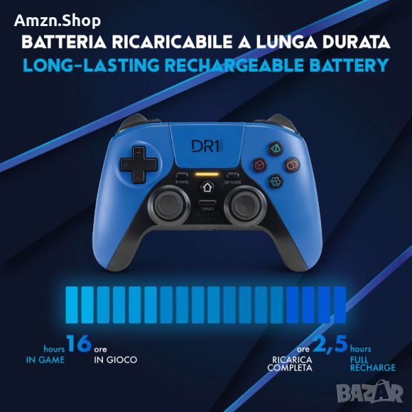БЕЗЖИЧЕН ДЖОЙСТИК КОНТРОЛЕР SHOCKPAD II ЗА PS4/PS4 PRO ( PS5 ) PC/WIN IOS СИН БЯЛ