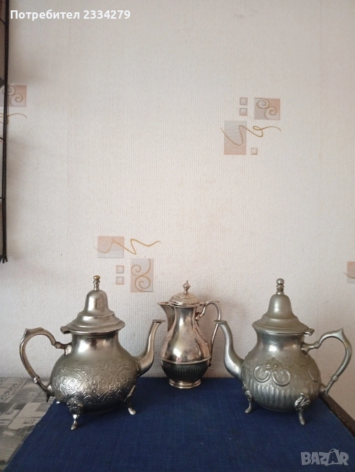 Кафе сервиз: каничка, захарничка, каничка за мляко. Най голямата кана е с цена 10€. → Обява 45242433
