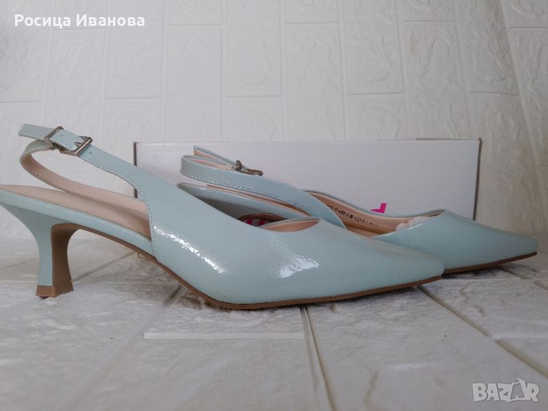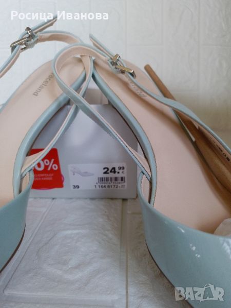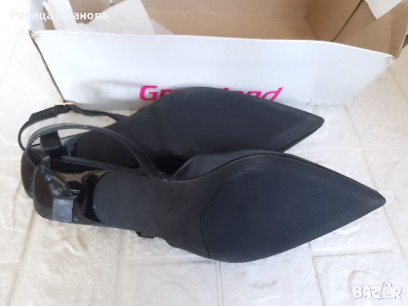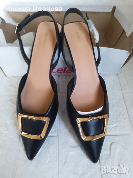Нови обувки Greceland с отворена пета на ниско токче. Еко кожа. 39 номер, но поради заострената форма на бомбето по- скоро отговарят на 38 номер
