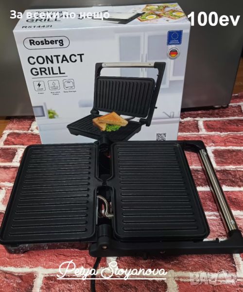 Контактен Грил Rosberg Premium мощен 1500W,Инокс, ОТВАРЯ СЕ НА 180°