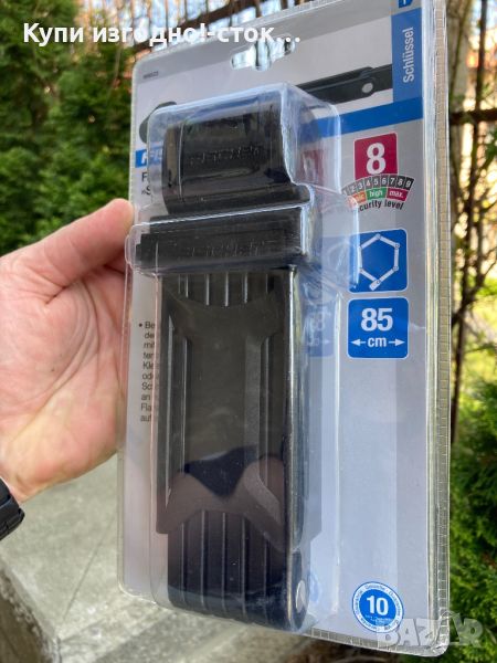 „Ние затрудняваме крадците на велосипеди! С правилната ключалка за велосипеди можете да защитите велосипеда си от кражба. Сгъваемата ключалка все още е сравнително нова в семейството на ключалките за велосипеди, но с функции, които не са постигнати в никоя друга брава: гъвкавост с ниско тегло и компактен дизайн – идеална комбинация от устойчивост, гъвкавост, тегло и транспортни размери.
