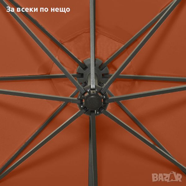 Чадър с чупещо рамо, прът и LED лампи, теракота, 300 см