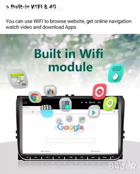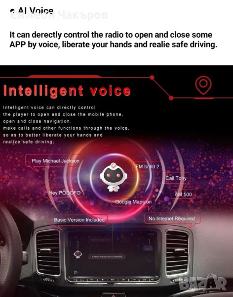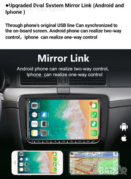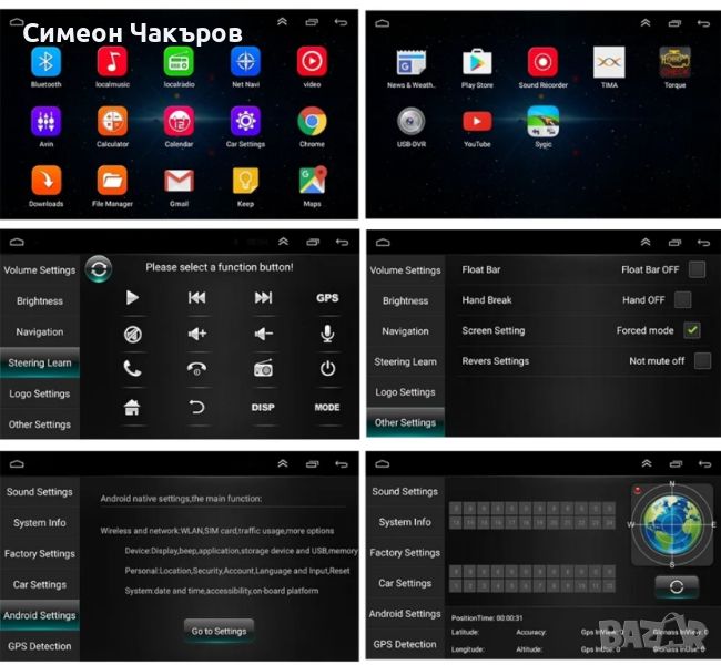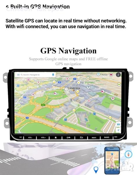 GPS навигация: Поддържа много видове навигационни приложения, като Google maps, Waze, Navfree,Sygic и др.