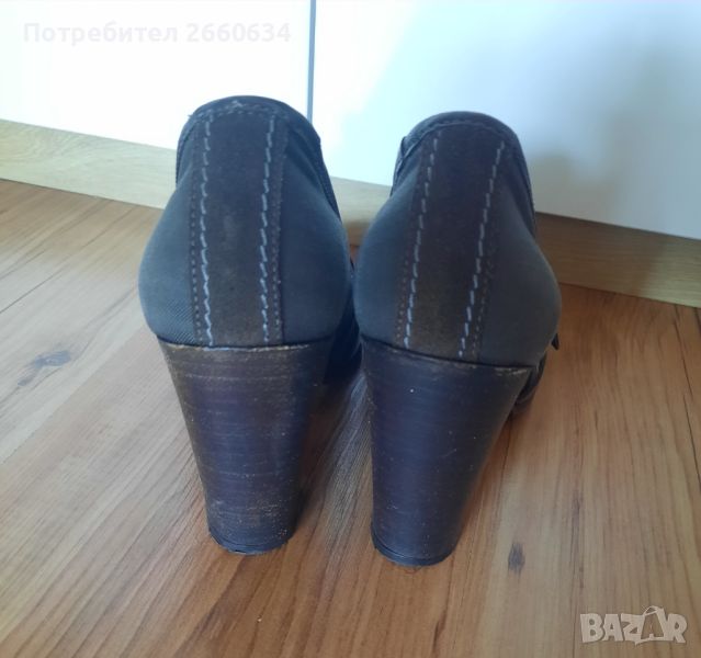 Обувките са номер 39, стелка 25см,ток 9см. , съчетание от ест.кожа и текстил, с нормални следи от употреба