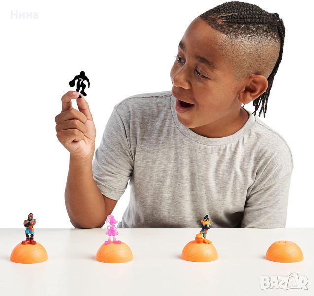 Добре дошли в Jam! Looney Tunes се завръщат и обединиха сили с баскетболния шампион ЛеБрон Джеймс в едно епично приключение в киберсвета в Space Jam: A New Legacy. Сега можете да съберете героите от филма и да пресъздадете някои от звездните движения и сцени с тези готини екшън фигурки! Този пакет с мини фигурки 4 - "Стартова линия" съдържа една изключителна фигурка на ЛеБрон Джеймс. Той се обедини с други членове на Tune Squad - Daffy Duck и Lola Bunny (Power Up), за да се изправят срещу техните съперници, Goon Squad. Освен това има още един рядък член на екипа "Мистерия", скрит в пакета, който можете да разопаковате. Коя рядка фигура ще вкарате?