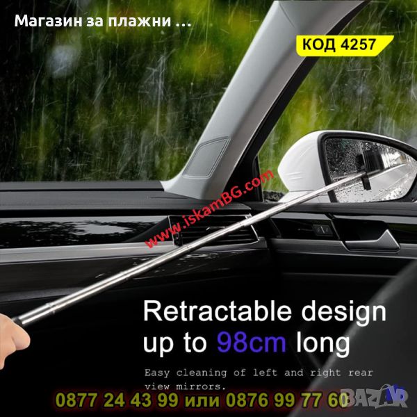 Мини чистачка за страничните огледала за кола - телескопична - КОД 4257