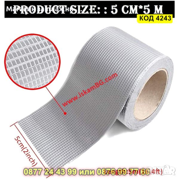 Изолационна лента тип алуминиево тиксо. Подходяща за изолация и уплътнение. Веднъж залепнала може да сте сигурни, че няма да се разлепи.