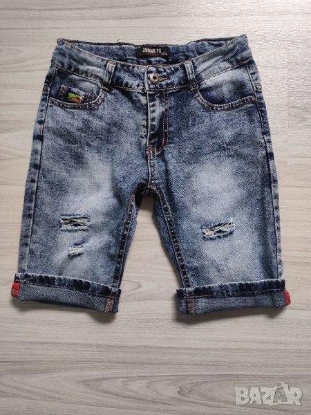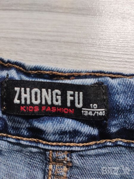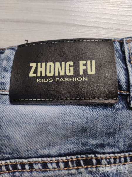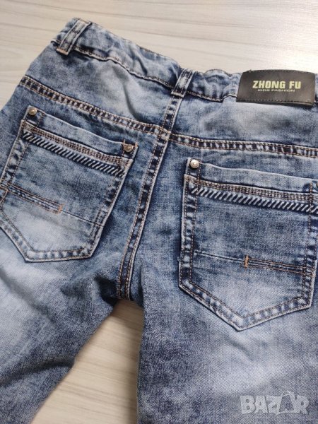 Панталоните са носени само веднъж за повод. Без забележки. С ефектни кръпки по тях. Закопчаване с цип и копче, на кръста има ластик за стесняване. Подходящи за 6/7г дете.