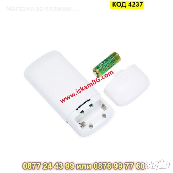 Захранване: 1 брой батерия 23A 12V (не е включена в комплекта)