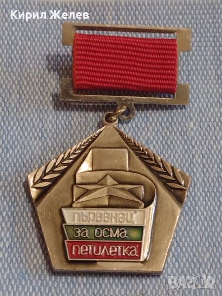 Рядка наградна значка от соца Първенец за Осма петилетка за КОЛЕКЦИЯ 44413 → Обява 45252166
