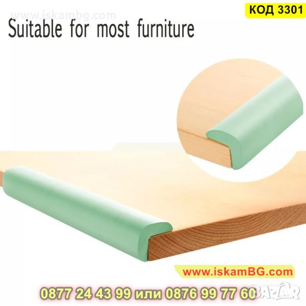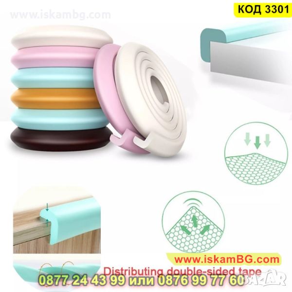 Предпазната лента за ръбове и ъгълчетата са оформени от мека пяна, която лесно пасва на ръбовете на всяка маса. Лентата може да се отреже на подходяща дължина. -Лентата е във формата на г образен профил. Двойно залепващият се слой прикрепва сигурно лентата и позволява лесно отстраняване при нужда. Бавно горящи, нетоксични, без латекс.