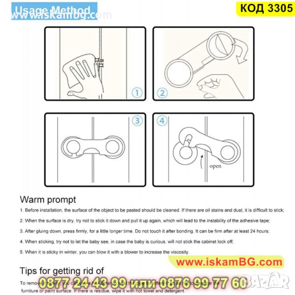 Заключващ механизъм за шкафове, гардероби, чекмеджета. Защита в дома, когато има малки деца. Лесен монтаж с помощта на монтажните лепенки. Може да се използва за всякакви видове шкафове, които разполагат с две крила.