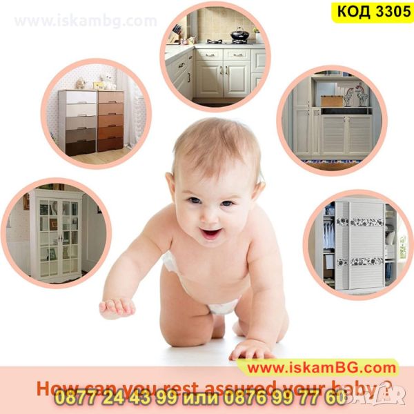 Предпазител за чекмеджета и шкафове от деца със заключващ механизъм - КОД 3305
