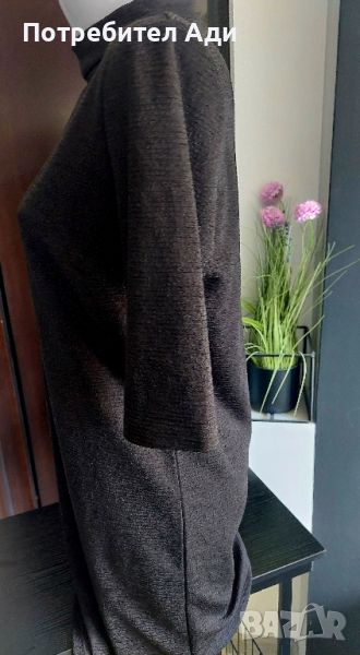 Като нова,черна ,без забележки!Кройката по тялото има еластичност.,ръкава е до свивката на ръката.Ето и размерите:Дължина:87 см.,ширина:50 см ръкав от рамото :32 см.Роклята не прозира.Изпращам задължително с преглед и тест по удобен за вас куриер.