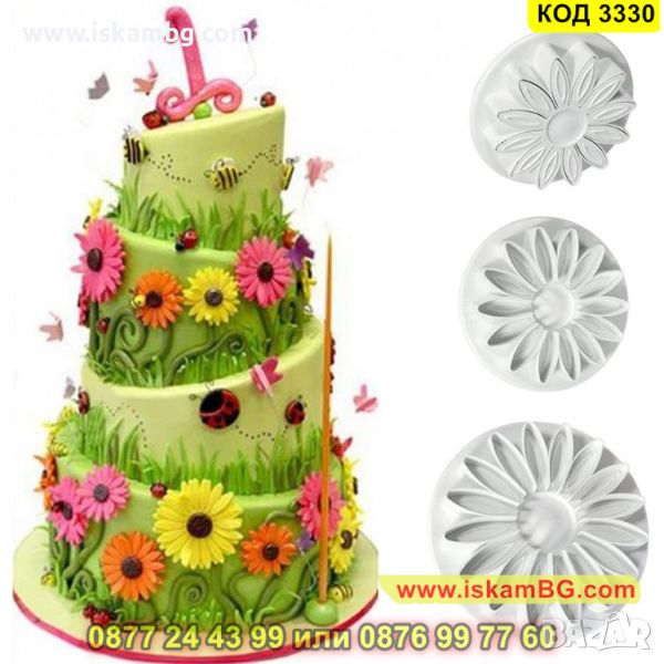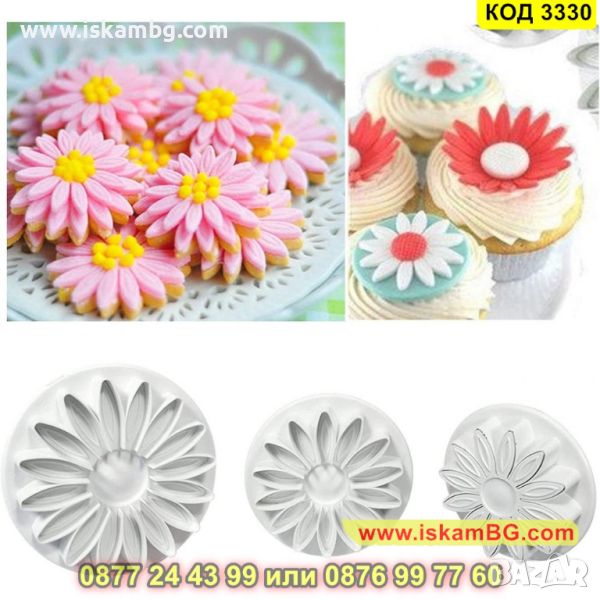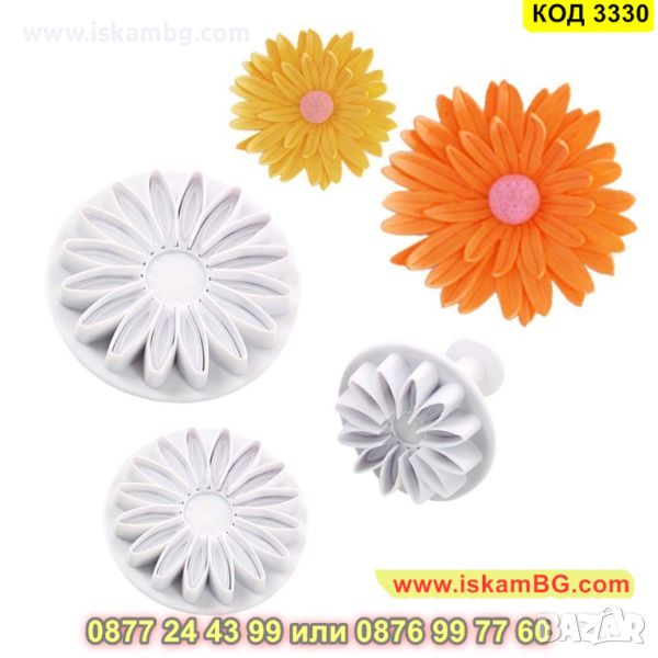 Сет от 3 броя сладкарски резци за фондан с бутало - Големи маргаритки - КОД 3330