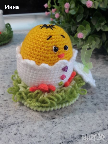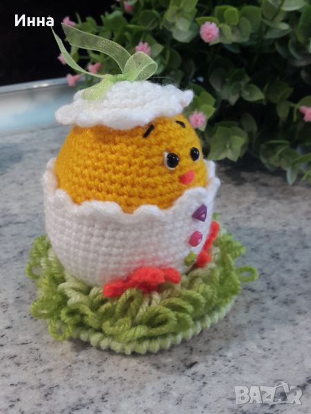 Великденски подаръци. Пиленце момче на тревата. Плетена играчка. Ръчно изработени. → Обява 45255394