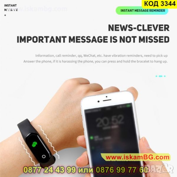 Фитнес гривна с много функции: Часовник с будилник, Напомняне за повикване,
