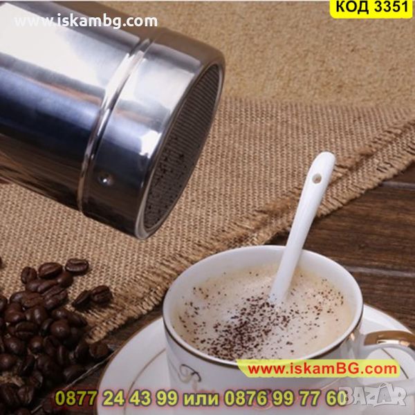 Съдът от неръждаема стомана за поръсване на подправки е идеален за поръсване на пудра захар, брашно, какао, канела, кокос на прах, подправки, кристална захар.
