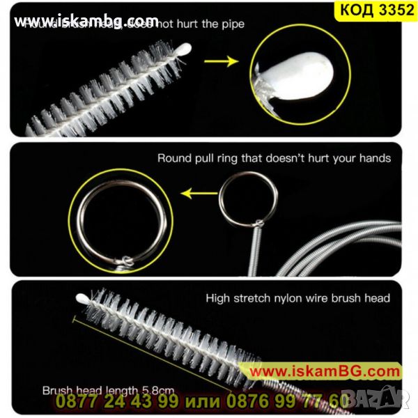 Гъвкавата конструкция на инструмента му позволява да достигне до извити отвори с ъгъл до 90 градуса, осигурявайки ви пълен достъп до труднодостъпни места. Но не само това, четката за отпушване на дренажни отвори може да се използва и за достигане на други трудно достъпни каналчета в дома.