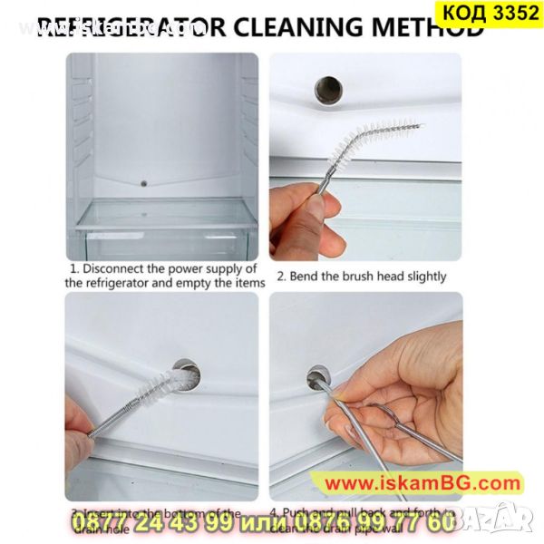 Този инструмент е създаден, за да ви помогне да се справите с неприятния проблем, когато дренажният отвор на хладилника се запуши и започне да тече, причинявайки неприятна миризма. Изработен от гъвкава стоманена пружина с дължина 1,5 метра и четчица в края, този инструмент е незаменим помощник при почистването на дренажния отвор на вашия хладилник.
