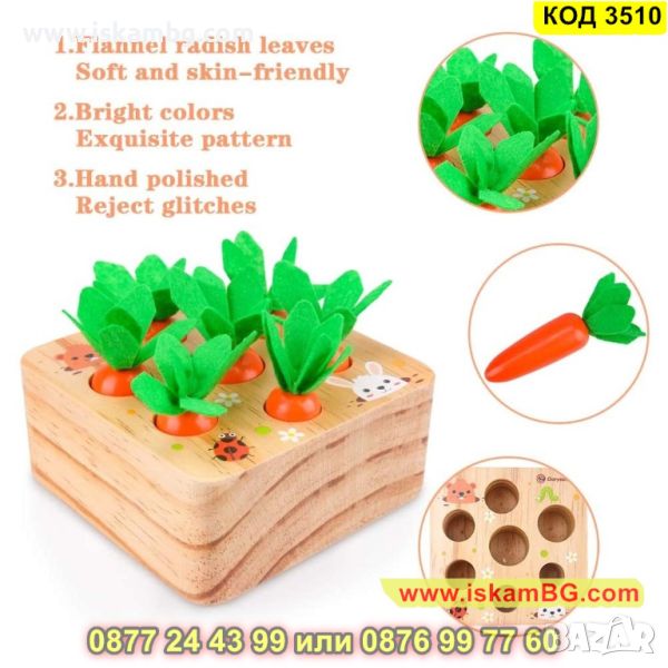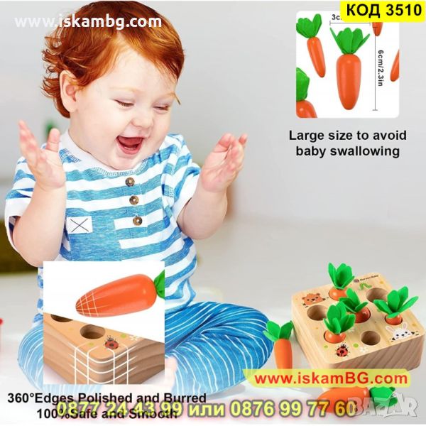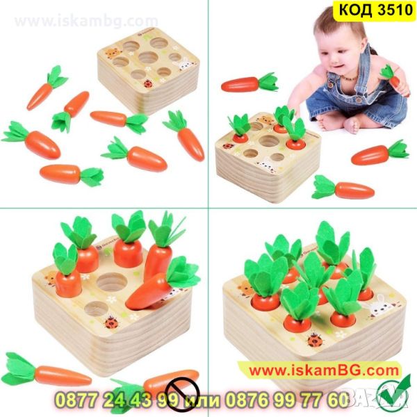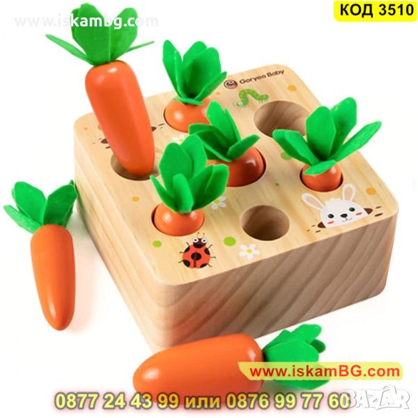 Монтесори дървена играчка за сортиране на моркови за момчета и момичета - КОД 3510