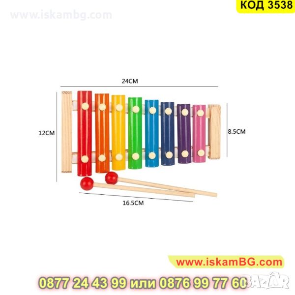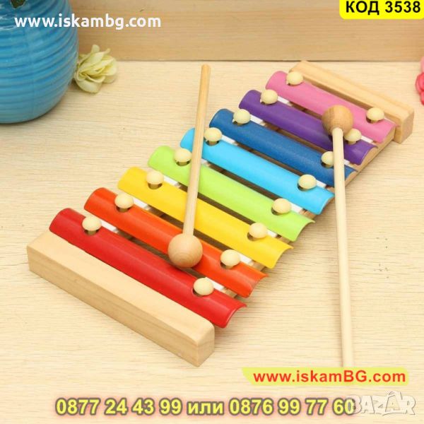 С дървения ксилофон се манипулира лесно. Удряш с палката и се чува звук. Ксилофоните като музикални инструменти се харесват на децата. Достатъчно е само да покажете как се докосват цветните клавиши с палката и по-нататък детето импровизира.