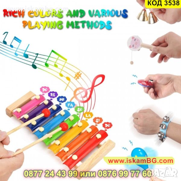 Музикалните играчки спомагат за координацията на движенията на ръцете и развитие на слуха. Играта с дървения ксилофон развива зрително-моторната координация у детето, стимулира развитието на мисленето му, детето лесно открива връзката между действието и резултата /удряш с палката и се чува звук.