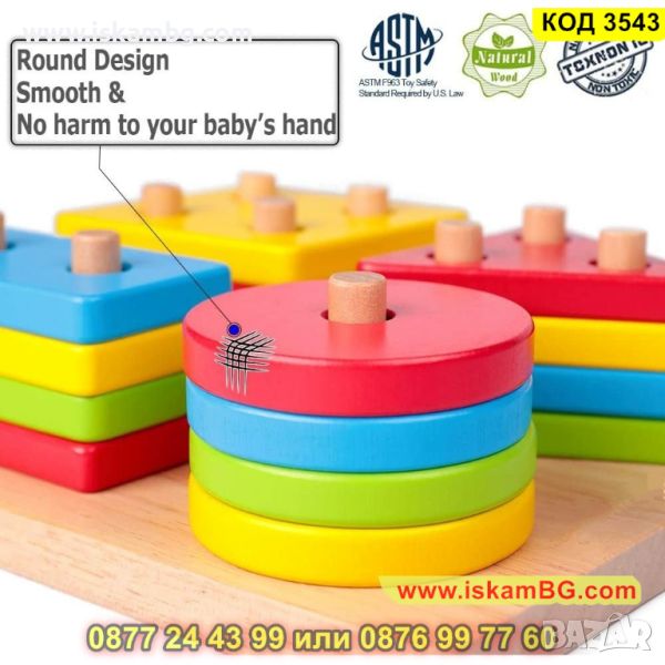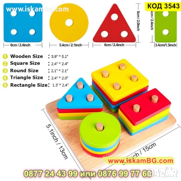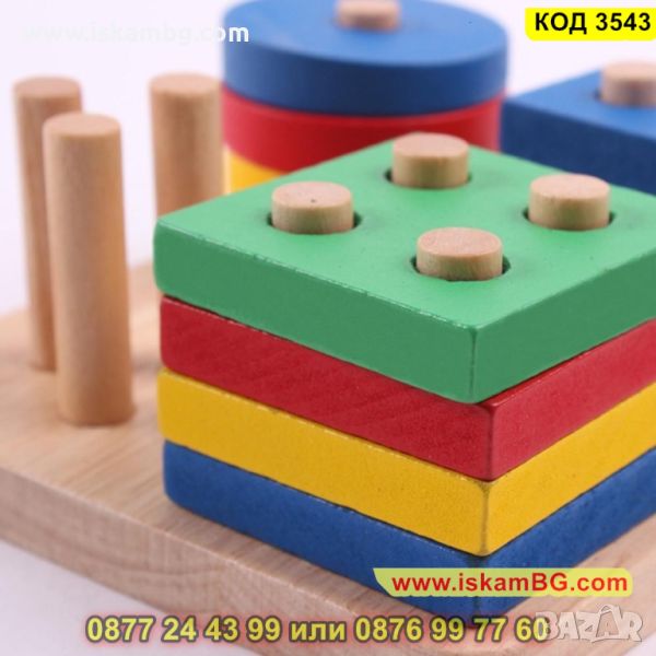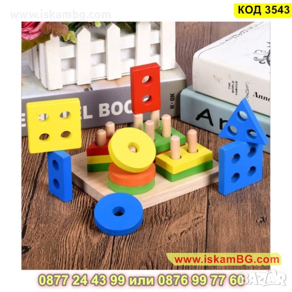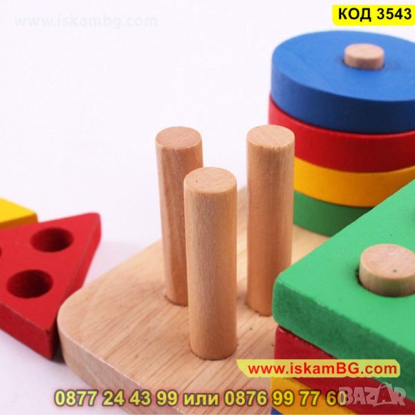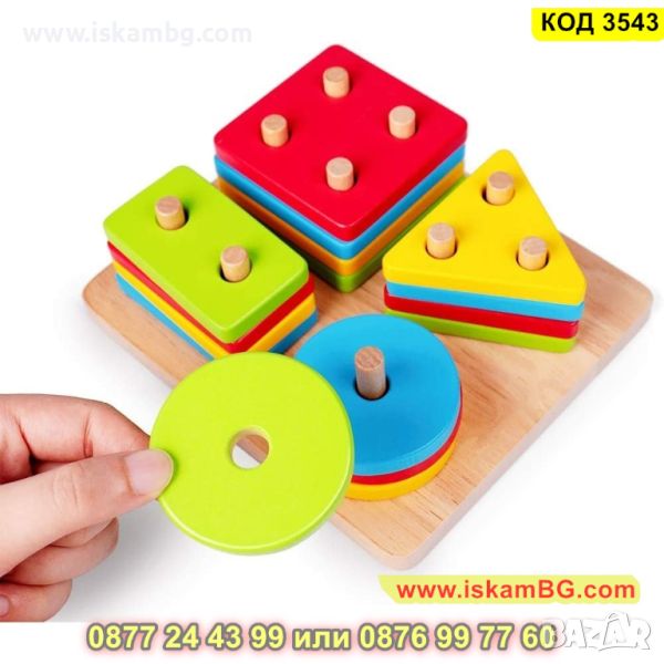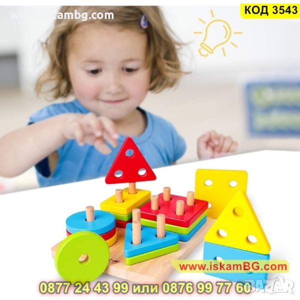 Дървен пъзел за сортиране с геометрични форми - КОД 3543