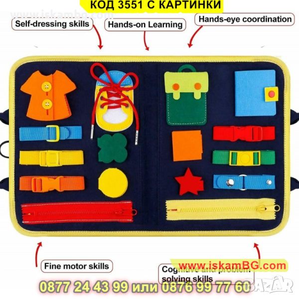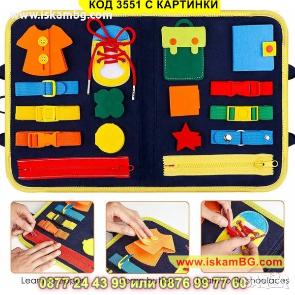Книжката е съобразена с интересите на децата в тази възраст. Меката занимателна дъска има над 30 различни активности и ще помогне на вашето дете да научи основни умения.