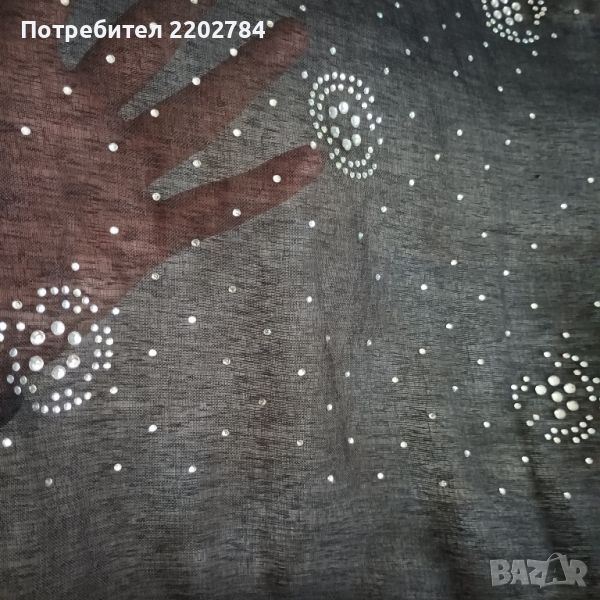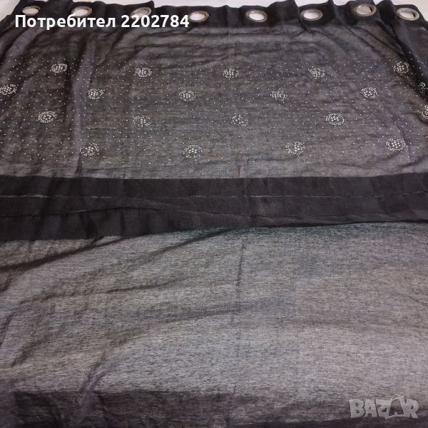 Последно е черно перде с прозрачност с блещукащи камъчета в горната част.Единствената забележка е лекото изтриване на никилираната част на халката- снимано.