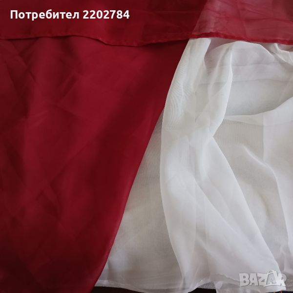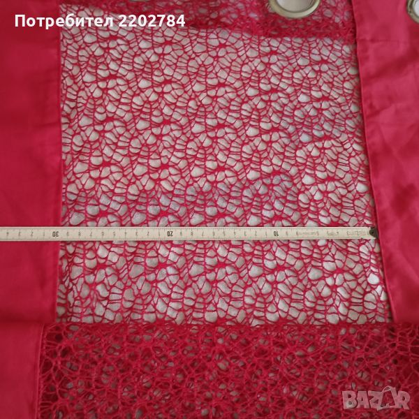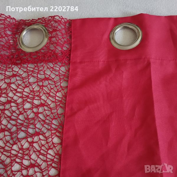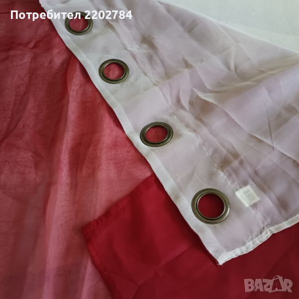 Следва двойно перде - в задната част е бяло,а предното е наситено червено.Размери: ширина 140см,дължина 230см.