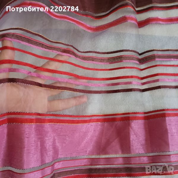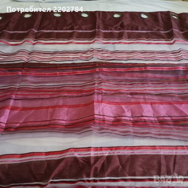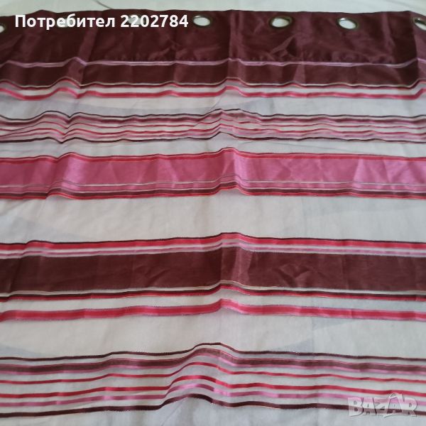 Следва тънко перде от воал с хоризонтални линии във виолетовата гама.Много нежно.Размери ширина 140, дължина 220см.