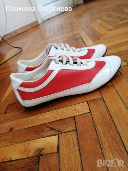 Дамски ежедневни обувки естествена кожа в бяло и червено → Обява 45266308