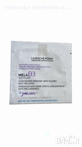 На Вашето внимание представяме най-новият и ХИТ продукт на световната козметична марка La Roche-Posay, Мела Б3 - серум за лице против тъмни пигментни петна. Той е създаден с клинично доказана ефикасност при всички фототипове на кожата, тъмни петна, петна от акне и неравномерност. Действа като постига оптимална ефикасност, като същевременно предлага некомедогенност и много добра поносимост. С ефикасност против повторна поява. Формулата му съдържа новата патентована съставка Melasyl и ниацинамид (витамин Б3). Подходящ за всички типове кожа, дори мазна и чувствителна. Без парабени. Дерматологично тестван!!!