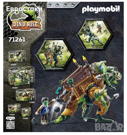 Иън и неговият T-Rex са готови за джунглата със страхотна броня и странично монтирани двойни оръдия. От позицията си на гърба на динозавъра Иън следи всичко и се включва в битката с копието си. С толкова много дино-човешка сила, злодеите по-добре се подготвят за най-лошото. С оригинални герои, впечатляващи динозаври и модерна броня, светът за игра Dino Rise от PLAYMOBIL предоставя всичко за наситени с екшън приключения в детската стая.