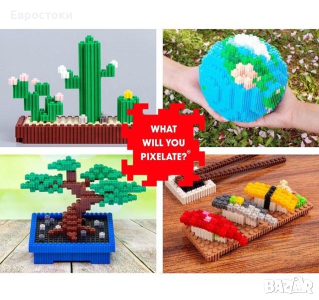 Безкрайни възможности – Pix Brix е пикселен арт пъзел, който позволява на художника да създава 2D пикселно изкуство и 3D конструкции само с 1 уникален патентован дизайн на парче. НЕ изисква основна плоча, вода, желязо или лепило за залепване.