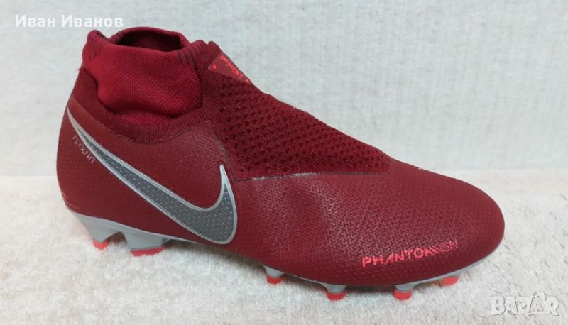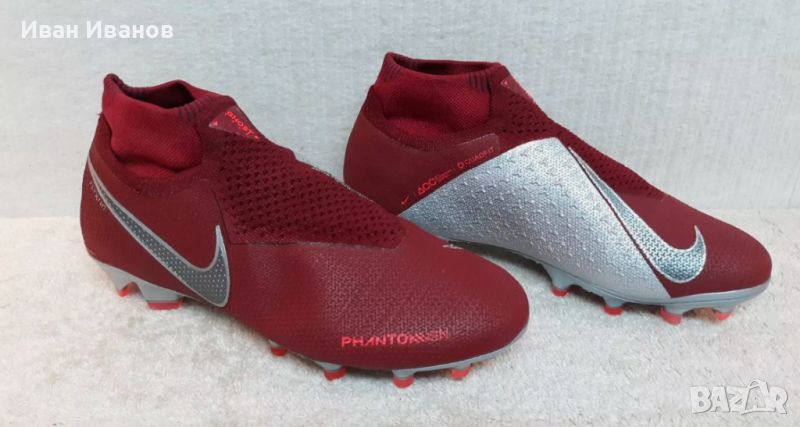 Nike Phantom Vision Elite DF FG 'Team Red' AO3262-606Нови , използвани веднъж Цена по магазините около 500 лева Ново поколение е на път да израсне, готово да покаже своите умения. Пакетът Rising Fire на Nike е свързан с утрешните суперзвезди, техният път към централната сцена. Сега е време те да се изправят срещу опозицията, да покажат своите умения и сърцата на футболните фенове по света. Силозът отдава почит на експлозивния и непредсказуем играч, който разбива защитите и подпалва терена по пътя. Дръзкият бордо прочит в комбинация с металните сребристи детайли осигурява екстравагантен и елегантен дизайн. Готови ли сте да се присъедините към утрешната суперзвезда? Вземете Rising Fire Pack и променете бъдещето си!• проектиран за смъртоносния играч с решителни удари, пренасяйки улиците на терена• изработен от материал Flyknit, покрит с тънък вакуумно оформен слой за по-голям контрол, като същевременно поддържа ниско тегло• вътрешна изработена плътно прилепваща мрежа Quadfit за оптимална стабилност. Това намалява необходимостта от залепване, приближавайки краката ви и футбола по-близо• Иновативна яка с динамично прилепване за възможно най-добрата опора за глезена и стъпалото, като същевременно ви осигурява комфорт - позволява на ботуша да се чувства като естествено продължение на крака ви• Хибридна шпилка конфигурация, проектирана за повишено сцепление при ускорение, като същевременно предлага зона на въртене за подобрено сцепление при извършване на усуквания и завои• снабдена със система Ghost Lace, скрита под езика. Това позволява възможно най-чистото докосване на футбола. С отвори за бързо връзване, за лесно връзванеТази обувка FG е създадена за твърди земни повърхности като естествена трева.Тегло: 207 грама.